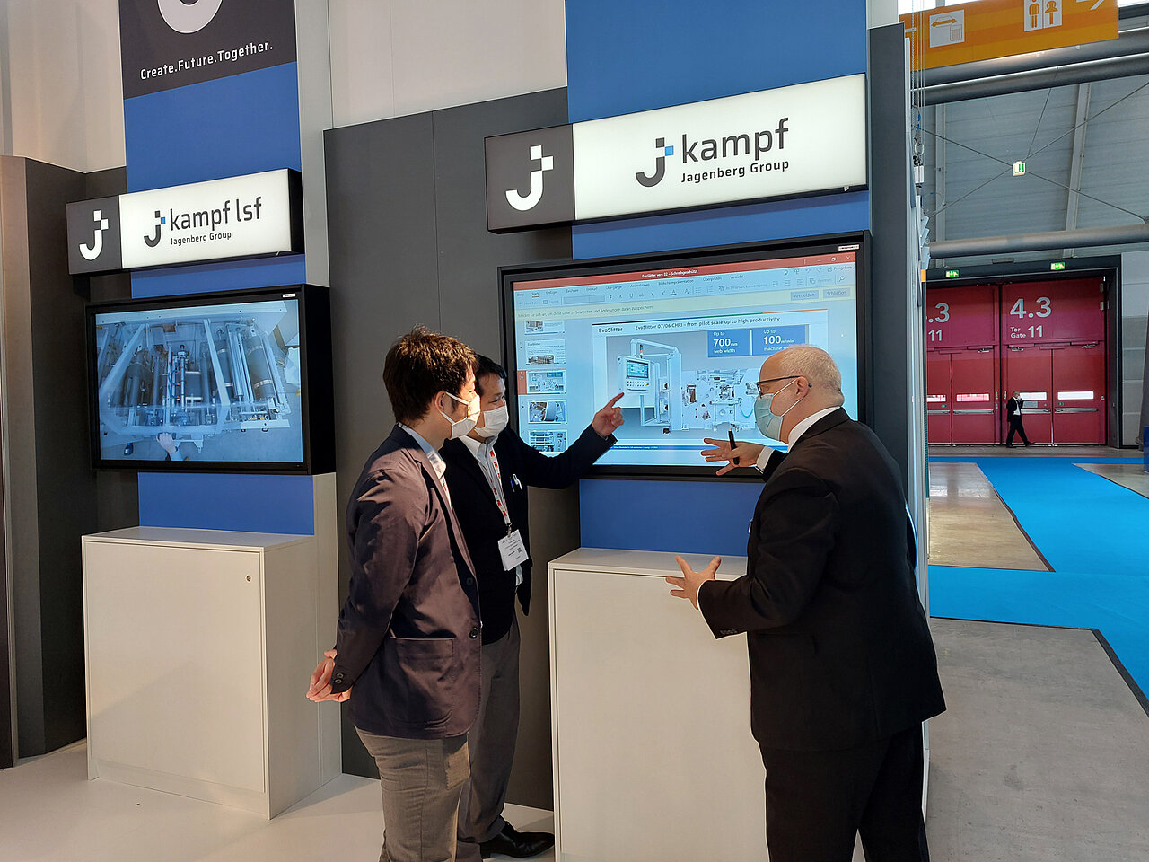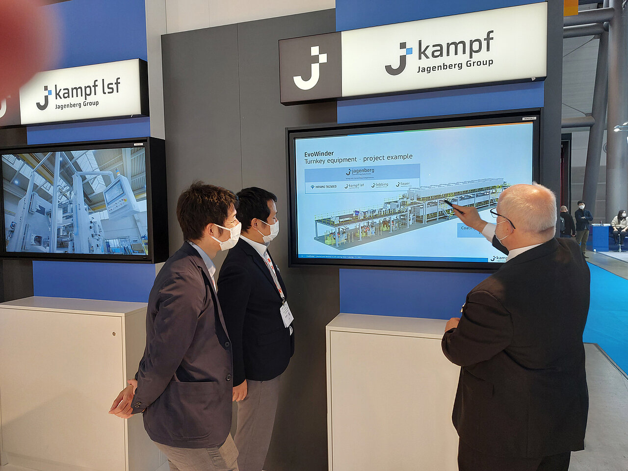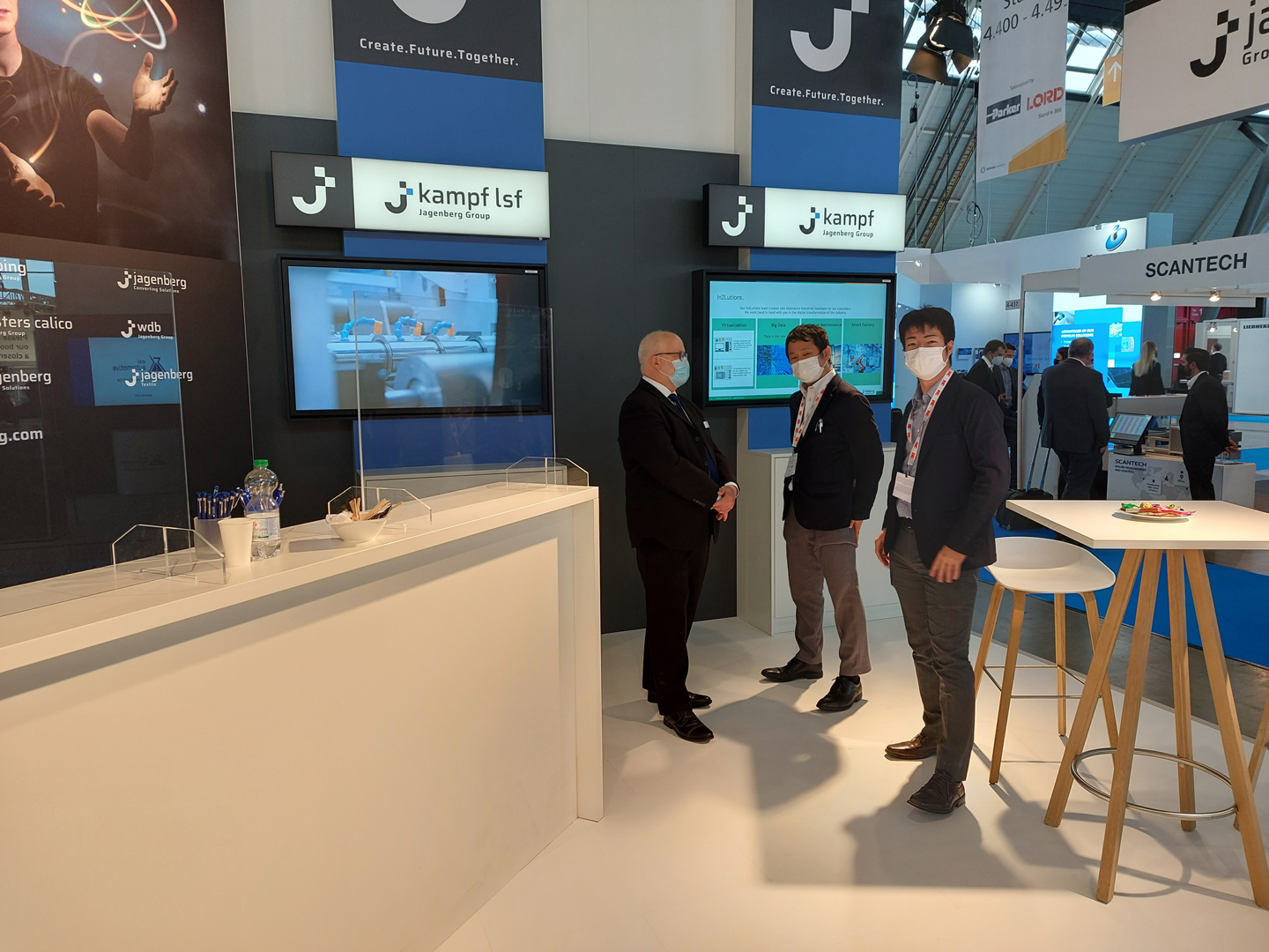 Due to the current Corona situation, a reduced exhibition team went to the fair. This represented the companies Jagenberg Converting Solutions, Kampf, Kampf LSF and Lebbing Automation & Drives.