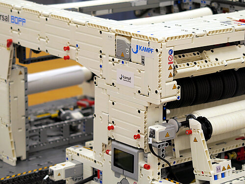 As a result, the first machine was made from the Danish plastic bricks in his living room at home. From memory, Mr. Moritz constructed a detailed copy of a Universal BOPP cutting machine using LEGO® Education and Mindstorm sets. Complementary "LEGO® Technic" models such as "bucket-wheel excavators" completed the plant in miniature before he put it into operation after electrical equipment and programming. But this was only the beginning: "The feedback from colleagues was a challenge for me to develop the model further," the tinkerer confesses.