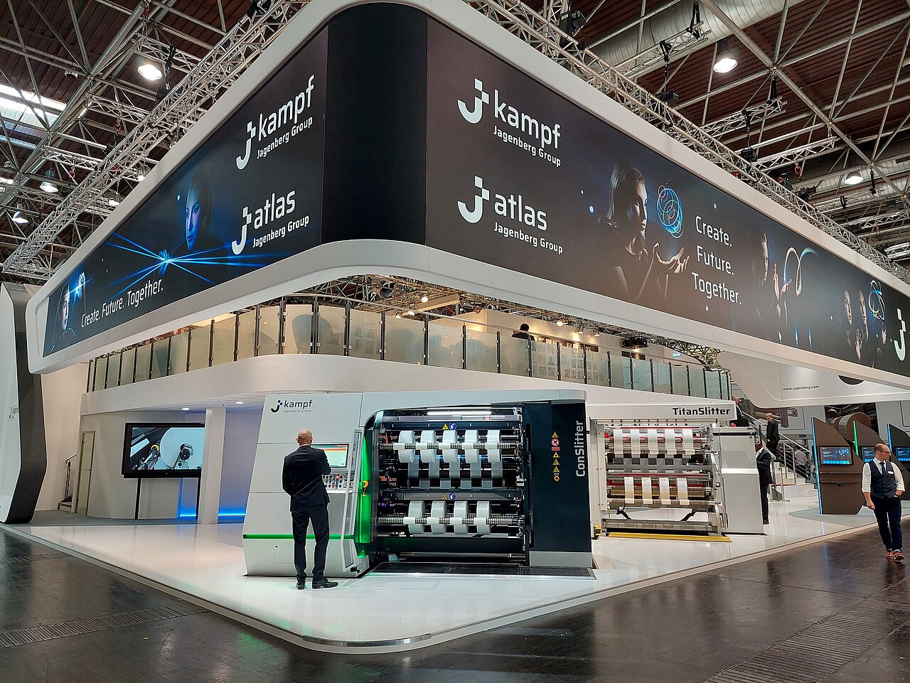 Kampf Schneid- und Wickeltechnik and Atlas Converting present themself at the international plastics trade fair together with other companies of the Jagenberg Group. The focus of the presentation - in addition to offering the new digital services - will be the joint portfolio of Kampf and Atlas Converting, headquartered in Bedford, UK. The two exhibits on the stand take this theme into account: visitors can look forward to two modern slitting machines in the new design. Both the Kampf ConSlitter and the Atlas TitanSlitter offer maximum productivity and flexibility by extensive option catalogues. The ConSlitter comes with modern turret technology and automation to reduce downtimes and increase production output. It is particularly suitable for processing ever smaller batch sizes. The Atlas TitanSlitter - also a turret slitter - is characterised by an even more compact design. Atlas and Kampf have been working together intensively since the end of 2020. A two-brand strategy jointly opens up